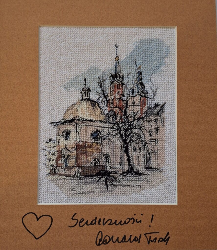 – państwo Anna i Paweł Kozik firma Katmandu Meble 11700zł („Kraków- widok na Bazylikę Mariacką i kościół Św. Wojciecha” haft z dedykacją od Donalda Tuska za kwotę 3700zł, „Kraków- Katedra Wawelska” pastel opatrzony podpisem Aleksandra Kwaśniewskiego za kwotę 8000zł)