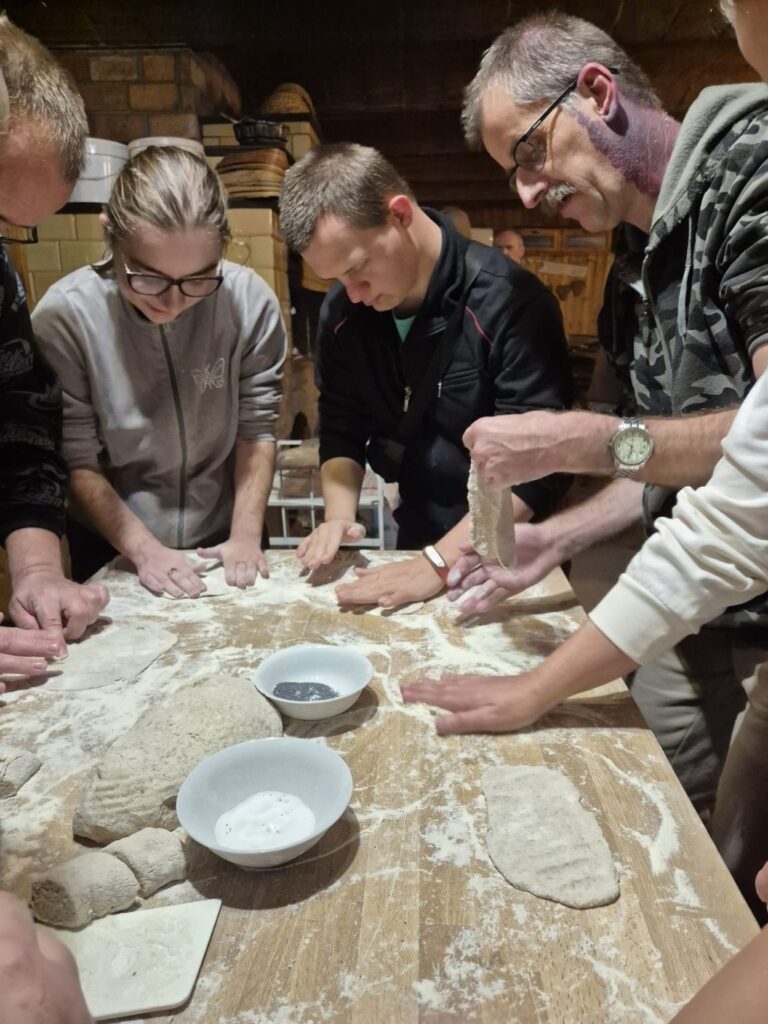 – Chlebowa Chata w Górkach Małych- gospodarze ukazali drogę ziarenka zboża, które musi pokonać wiele etapów, aby w postaci bochenka znaleźć się na naszych stołach i kusić niepowtarzalnym zapachem. Mogliśmy przypomnieć sobie jak dawniej wyglądało życie na wsi, jak robiono masło, jakimi narzędziami pracowano w gospodarstwie, czym zajmuje się pszczelarz. Uczy to przede wszystkim szacunku do ciężkiej pracy rolnika, która trwa codziennie od świtu do zmierzchu. Każdy z podopiecznych mógł praktycznie przekonać się, jakie czynności należy wykonać od wyrobu ciasta do otrzymania gotowego bochenka lub podpłomyka.
