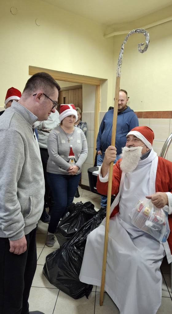 „Święty Mikołaju, w ten grudniowy czas na ciebie czekamy- prosimy, odwiedź nas! Kochany Mikołaju, przyjacielu nasz, worek pełen niespodzianek dla nas masz…” – Mikołajki w WTZ.